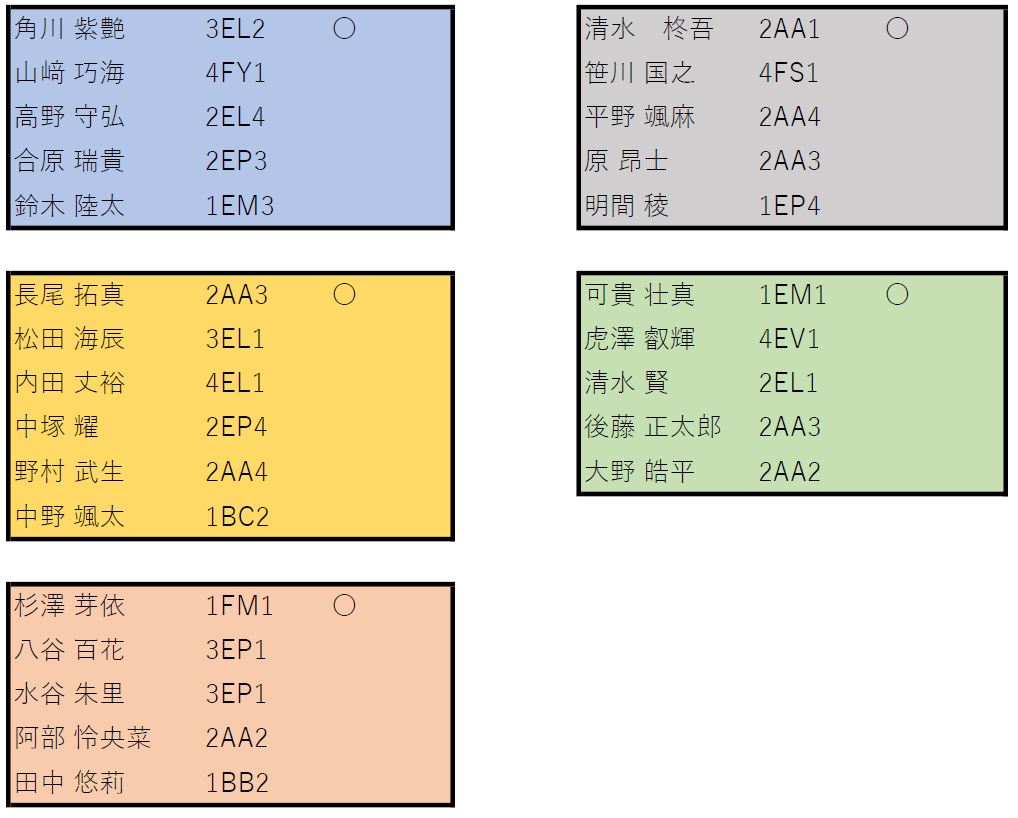 〇印は班長です。