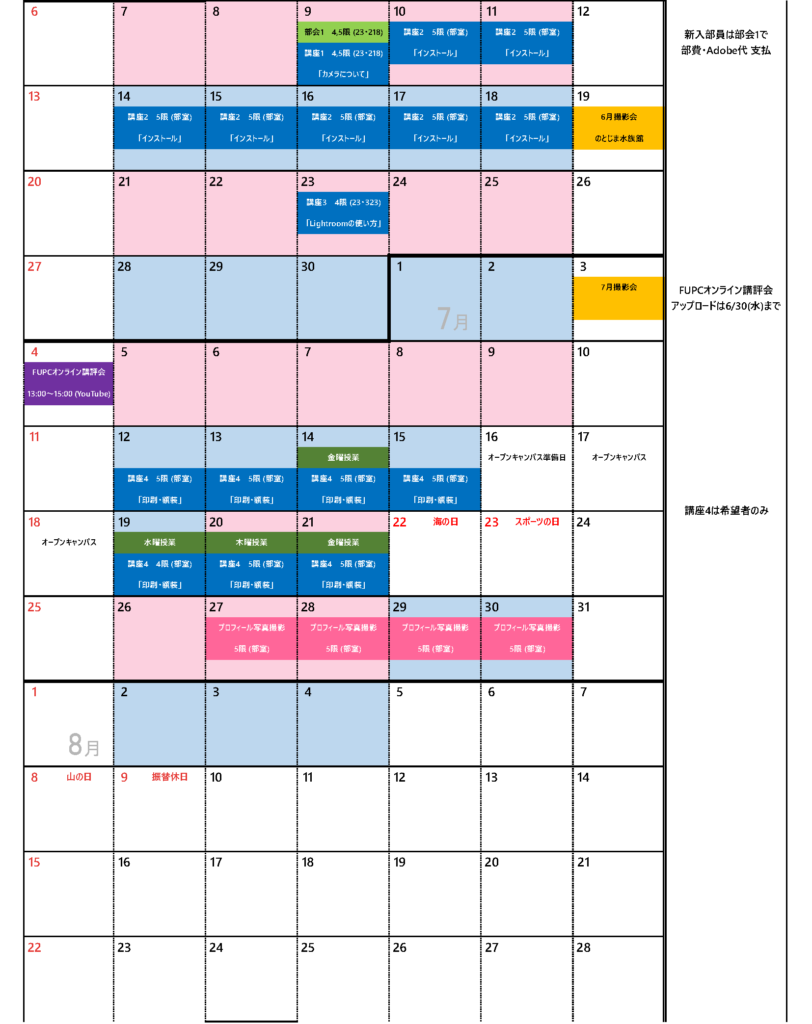 以下の日程で行います。