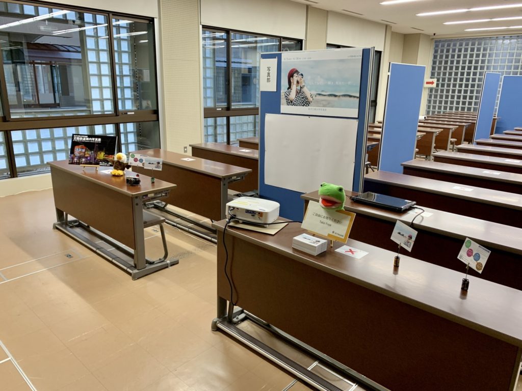 本番当日は各々がカメラを持参し、ブースに置いておきます。無人になるときは、盗難防止のためにカメラを持って行くことと、青いジャンパーを着た学友会スタッフに無人になる旨を伝えることを忘れないようにしましょう。