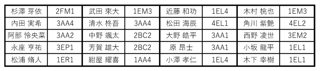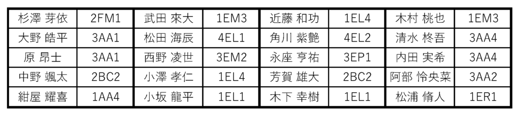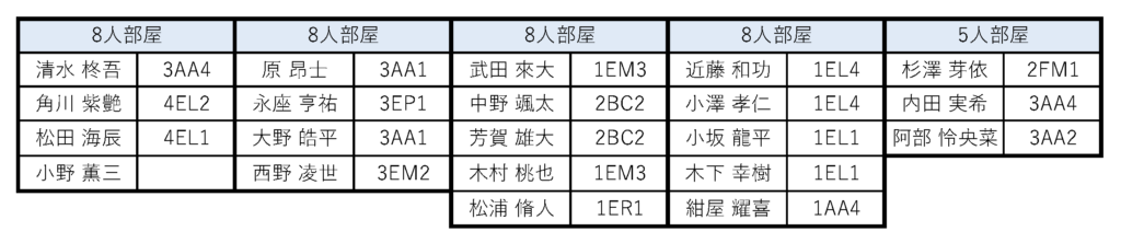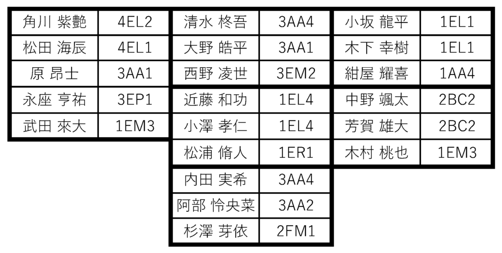 各班の先頭に名前がある人が班長です。
