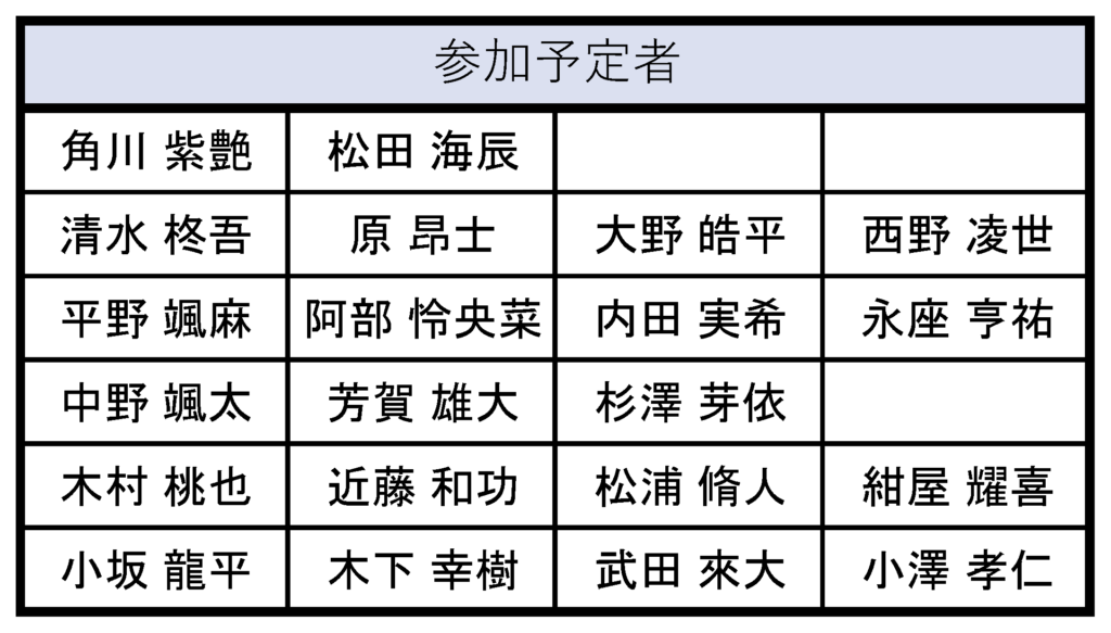 参加する予定の方は自分の名前があるか確認してください。
