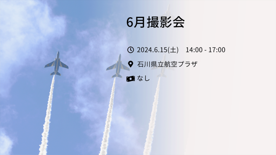 6月撮影会を6/15(土)に石川県立航空プラザで開催します。